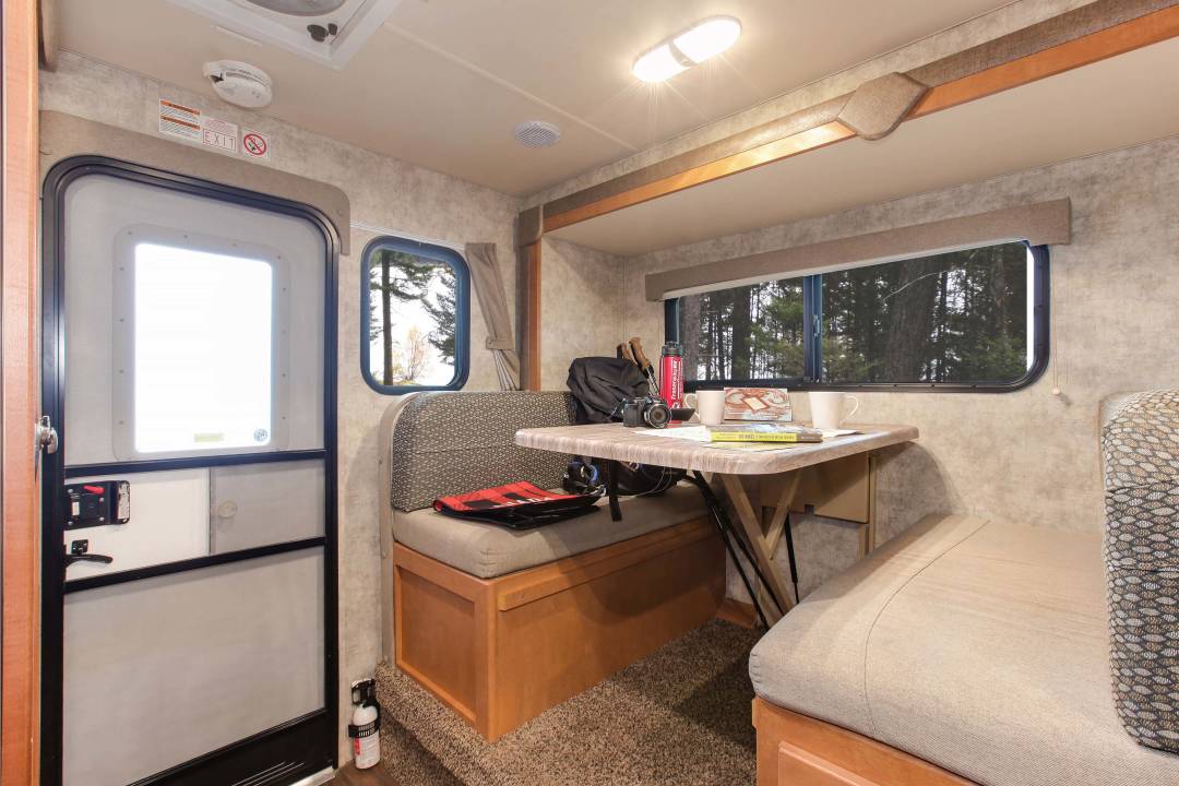 Slide-out dinette – Expands the interior space, providing a separate dining and lounge area that easily converts into an extra bed.