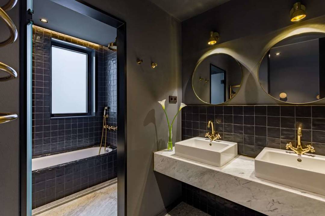 It blends an 18th-century building with a modern interior and comfortable rooms. The contemporary style evokes a sense of cleanliness and tranquility, while raw elements, such as an unfinished stone wall, give the space character.