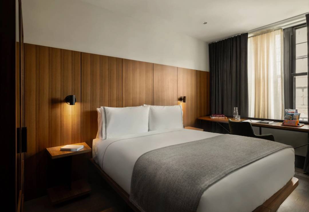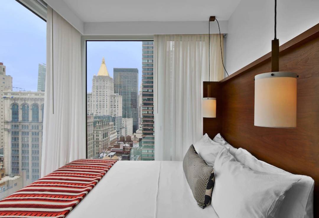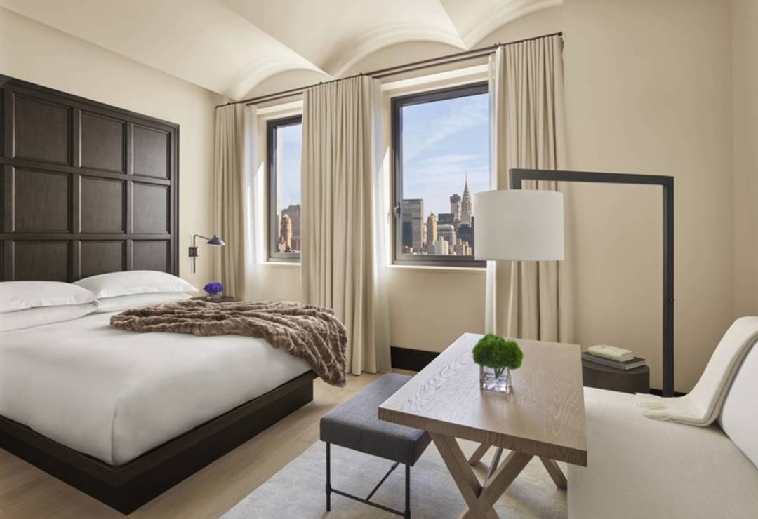 The New York Edition stands out for its refined design, luxurious rooms with panoramic views, an exclusive restaurant, a chic lounge, and its central location in the heart of Manhattan.