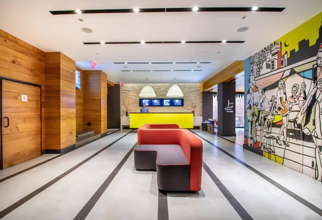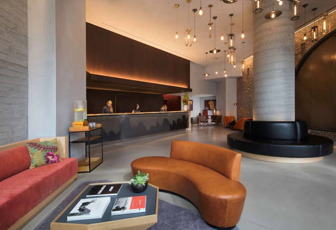 The typical Brooklyn feel of this hotel is striking as you enter the colourful lobby of this former window and door factory. Don't forget to visit the Rooftop and admire the New York skyline.