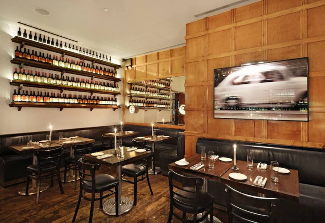 Gild Hall perfectly reflects the trendy character of the Financial District. Leather, parquet flooring, deer antlers, upholstered shelves: the furnishings create the atmosphere of an English club.