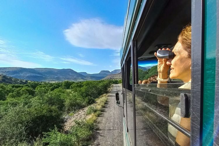 Transfers in a comfortable “Adventure Truck” (with individual lockers, USB charger, reclining seats and panoramic windows)
