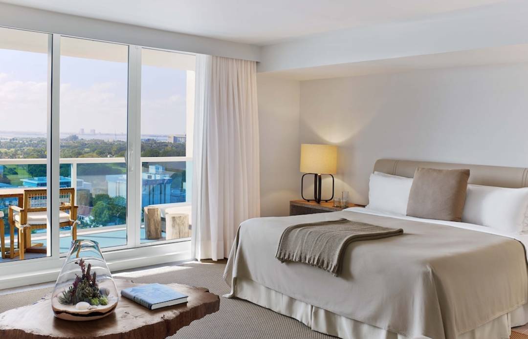 The rooms at 1 Hotel South Beach are infused with natural elements and exude a rustic yet refined atmosphere. Featuring reclaimed materials, organic fabrics, and breathtaking views of the ocean or city, the rooms offer a harmonious and serene environment. Every detail has been carefully considered to promote the well-being of guests and the planet.