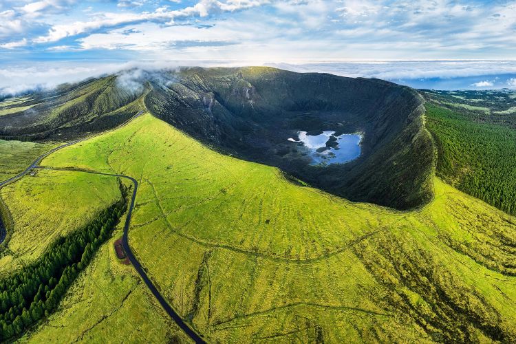 Discover Faial, the island with its distinctive pentagonal shape and a surprisingly varied landscape. Here, green hills, rugged coastlines, and sweeping vistas blend seamlessly. The absolute highlight is undoubtedly the impressive caldera, one of the most beautiful craters in the Azores, where low-hanging fog often creates an almost mystical atmosphere.