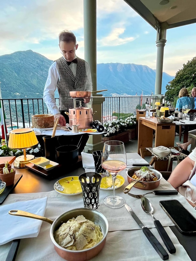 Nous nous sommes promenés dans les magnifiques jardins de la Villa Melzi, où plantes exotiques, statues et sentiers sinueux bordent le lac. Un moment particulièrement mémorable fut notre verre au mythique Grand Hotel Villa Serbelloni. Depuis la terrasse, on observe la piscine et le lac pendant que de luxueux bateaux accostent doucement. On a presque l’impression d’être dans un film. Pour le déjeuner, nous avons aussi découvert une petite adresse coup de cœur : Dai Viga Pasta Fresca. On choisit ses pâtes et sa sauce … et quelques minutes plus tard, on savoure une assiette de pasta fraîche.