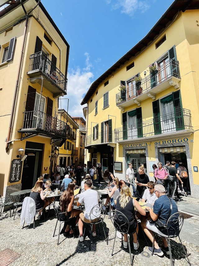 Parmi nos arrêts préférés autour du lac de Côme, il y avait Menaggio. Alors que certains endroits du lac peuvent être très fréquentés, Menaggio garde une atmosphère détendue et locale. La charmante Piazza Garibaldi est le cœur du village, où les habitants prennent tranquillement leur espresso pendant que la vie passe doucement autour d’eux.