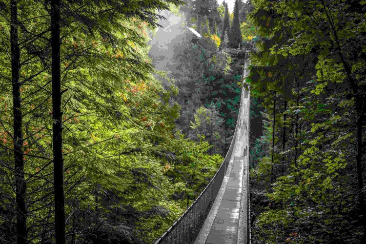 Le pont suspendu de Capilano, emblème de la région de Vancouver, offre une expérience spectaculaire dominant la forêt tropicale luxuriante. S’étendant sur 137mètres au-dessus de la rivière Capilano et suspendu à une hauteur de 70mètres, cet impressionnant ouvrage d’art constitue une visite incontournable pour les aventuriers et les amoureux de la nature.