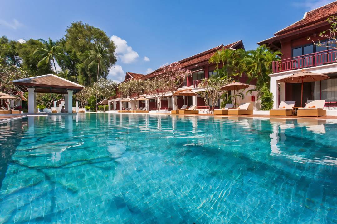 Au cœur de jardins luxuriants et face à la mer, ce resort respire la sérénité, l’élégance et l’hospitalité raffinée. Vous logerez dans des chambres ou villas stylées, au décor thaï authentique, pensées pour une détente absolue. Offrez-vous une parenthèse au spa, savourez les délices de la cuisine locale et vibrez au rythme décontracté de l’île.