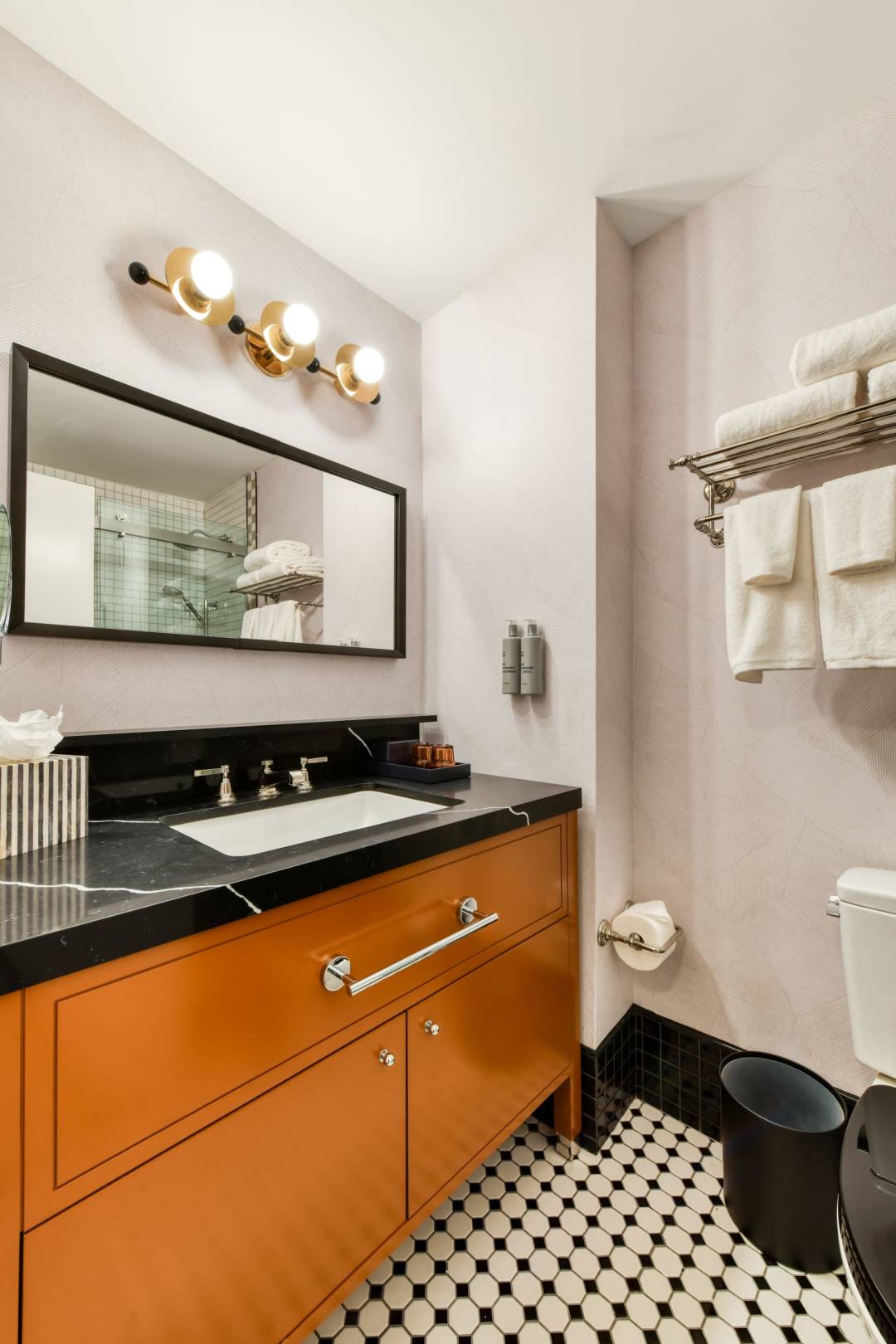 De dynamische buurt Hell’s Kitchen verwelkomt CIVILIAN, dicht bij Times Square. Kleuren, gordijnen en leuke details verwijzen naar het theater. Je verblijft in een Cozy Queen kamer, perfect voor koppels of indien je young adults liever in een eigen kamer slapen.