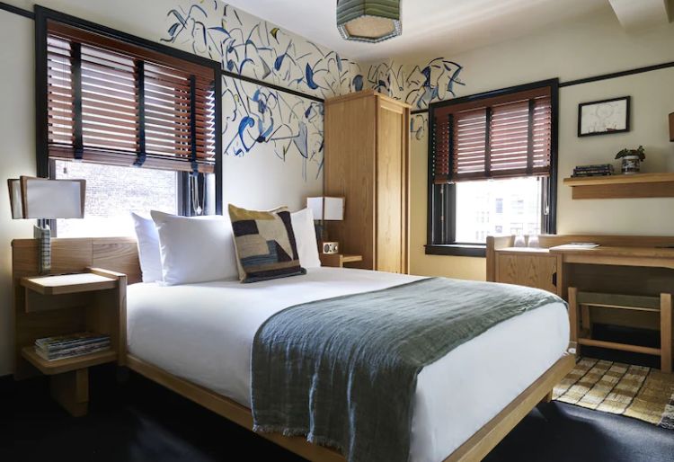 De dynamische buurt Hell’s Kitchen verwelkomt CIVILIAN, dicht bij Times Square maar net ver genoeg van de glinsterende lichten. De theater vibe komt je tegemoet met speciale verlichting, dramatische gordijnen en ruwe industriële materialen die de sfeer op het podium of backstage nabootsen. Ook in de kamers verwijzen kleuren, kunstwerken en leuke details naar het theater. Zoals je kan vermoeden is een Cozy Queen of Twin kamer klein maar gezellig, de Spacious King of Doubles zijn ruimer. Bij CIVILIAN ligt het verschil vooral in de ervaring. Je betaalt enkel voor wat je belangrijk vindt. De basis is een bed voor de nacht, zonder franjes. Er komt je hele verblijf niemand langs om je kamer te fatsoeneren, maar heb je propere handdoeken of extra shampoo nodig bestel je dat even via de app. Vind je toch graag elke avond een opgemaakt bed en glimmende badkamer, voeg housekeeping toe. Bouw je verblijf verder op met dagelijks ontbijt, vroeg inchecken of laat uitchecken. WiFi is inbegrepen, voor Ultrafast WiFi leg je wat bij. Je kan zelfs aan een prikje een dagpas nemen voor TMPL om de hoek, een wellness center met een 25 m zoutwaterzwembad, sauna en work out studio. CIVILIAN is een smeltkroes van kunst, muziek en theater, hier meng je vlotjes tussen de grote namen van de creatieve en theaterscènes van Manhattan. In 2022 openen een restaurant, een secret garden, toegankelijk via een verborgen ingang, een luxueuze lounge waar je kan ontbijten, werken of relaxen, en een rooftop lounge met een prachtig uitzicht.