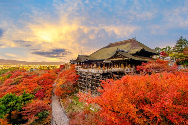 Bezoek de iconische tempel Kiyomizu-dera, bekend om zijn houten veranda met uitzicht over Kyoto. Bewonder de eeuwenoude architectuur en de levendige kleuren van het prachtige landschap.