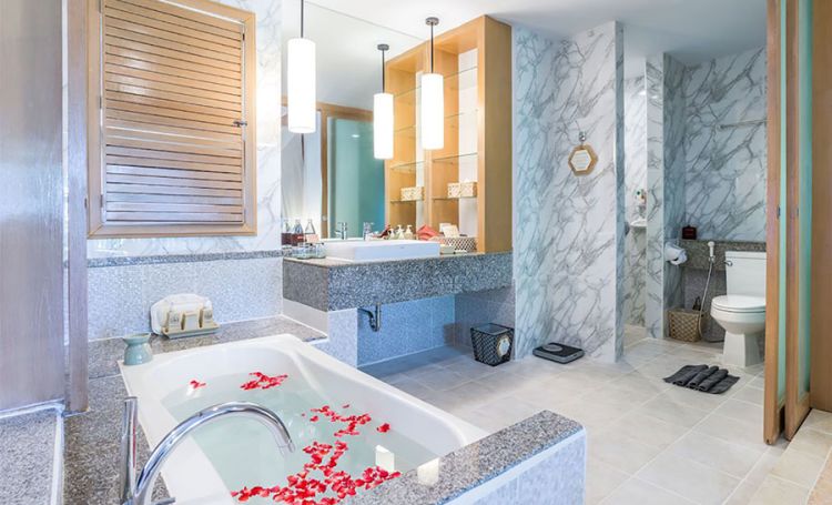 Het schitterende uitzicht op de baai vormt een harmonieus decor voor uw verblijf bij Pakasai Resort. Hier smelten moderne elegantie en de natuurlijke pracht van tropische tuinen samen, terwijl de serene omgeving een gevoel van rust biedt.Milieubewustzijn en luxe gaan hand in hand