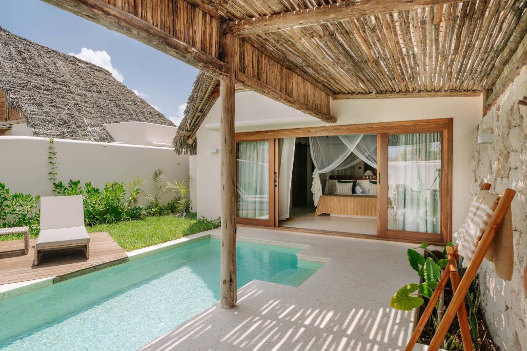 De Deluxe Villa van Attitude Matemwe is een verfijnde cocon, ideaal voor wie verlangt naar een rustige ontsnapping. Elke villa beschikt over een eigen tuin en privézwembad, perfect om te genieten van de stilte of een intiem moment met z’n tweeën. De ruime badkamer met dubbele inloopdouche opent op een schaduwrijke terras dat de zachte sfeer van de villa naar buiten toe verlengt. Binnen zorgen de lichte slaapkamer, het bureauhoekje en de knusse leesruimte, ideaal voor een siësta, voor een elegant toevluchtsoord dat meteen aansluit bij de rustgevende geest van Zanzibar.